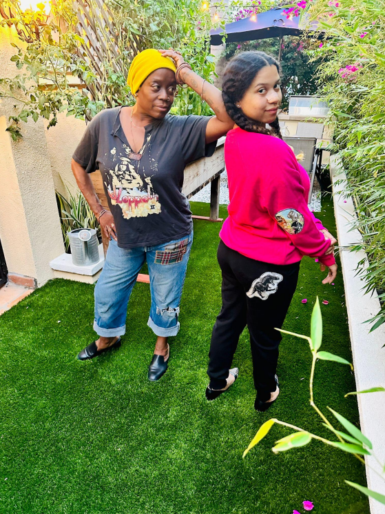 sweatpants and shirts LUV’d up with patches of vintage fabric"